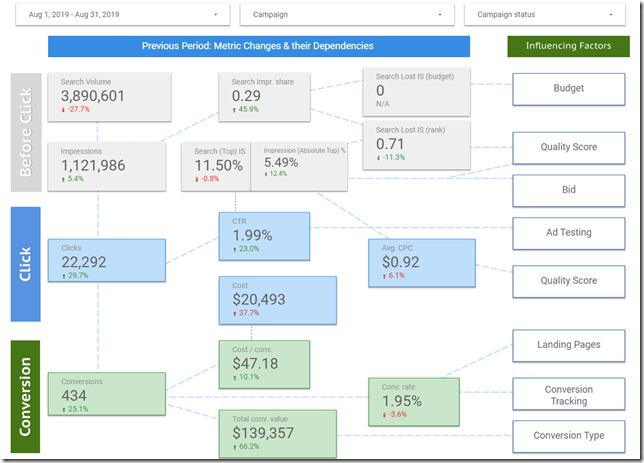 We’ve updated the Google Data Studio template that we use for the Performance Analyzer KPI monitoring series with several new features. If you’re not familiar with this template, it’s the easiest way to tell data driven PPC stories by just glancing at a metric comparison. The New Features Top & Absolute Top Impression Share As […]