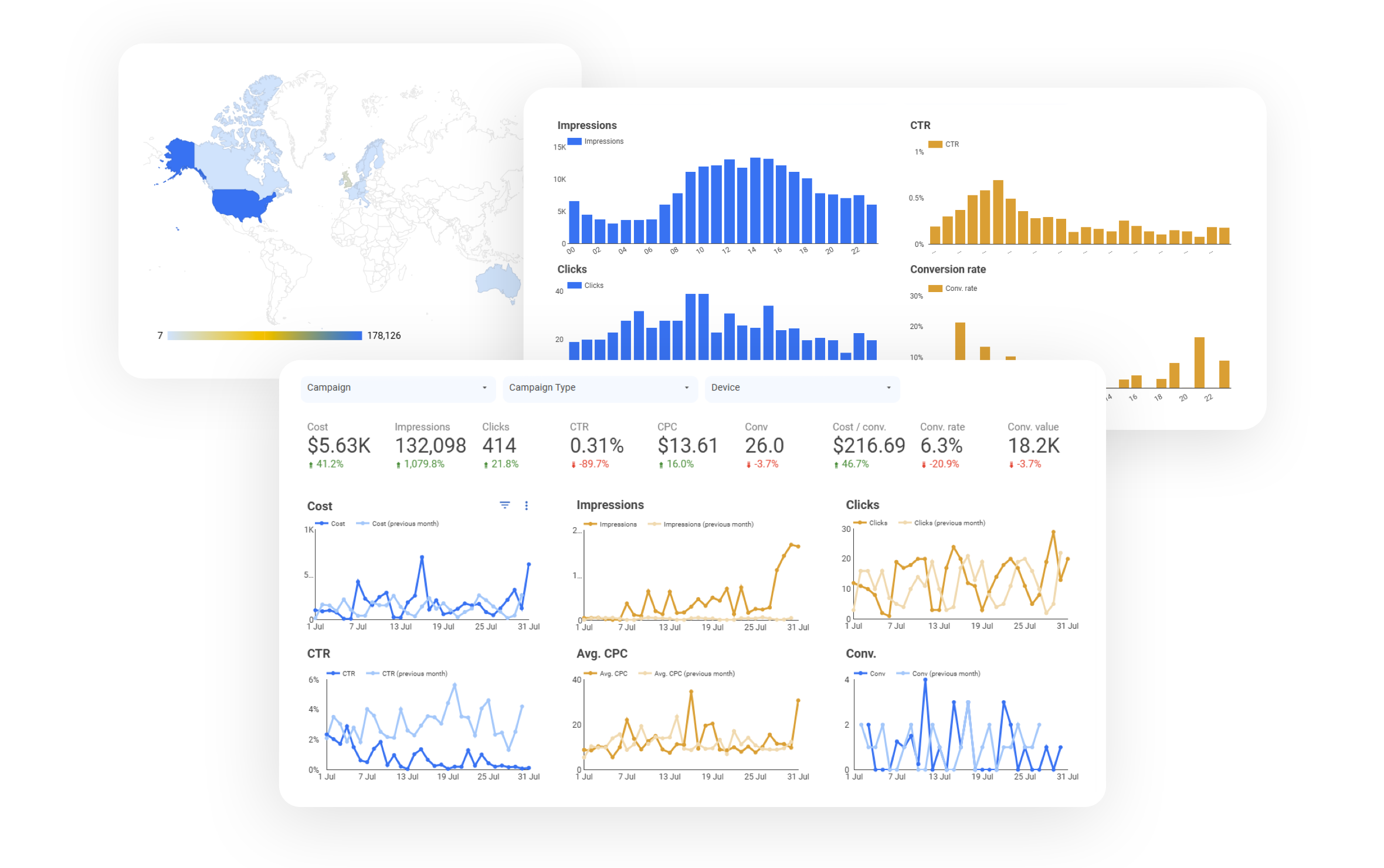 Use live, interactive dashboards to view your data and easily export it as a PDF to share with your team or clients.