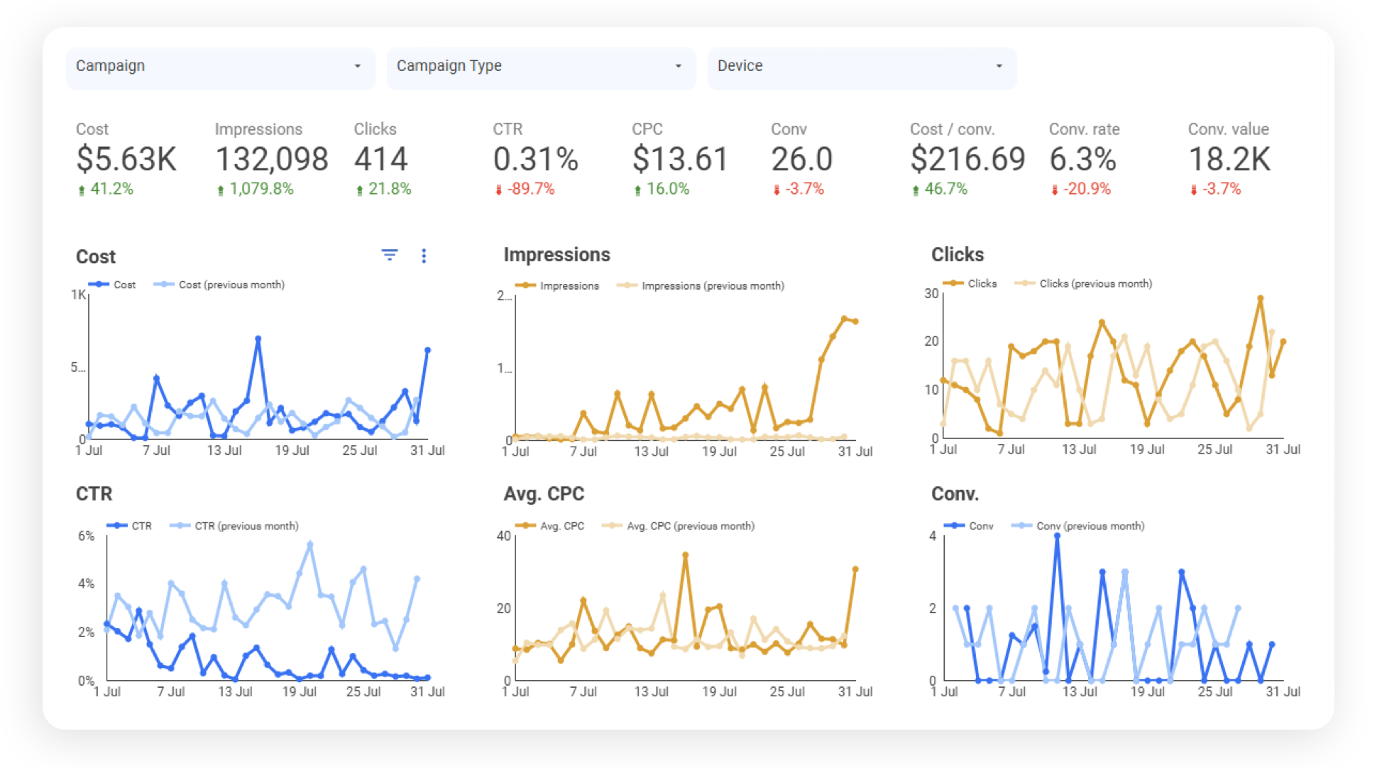 We’ve prebuilt Looker Studio templates, so you don’t have to spend hours setting up your PPC reporting.