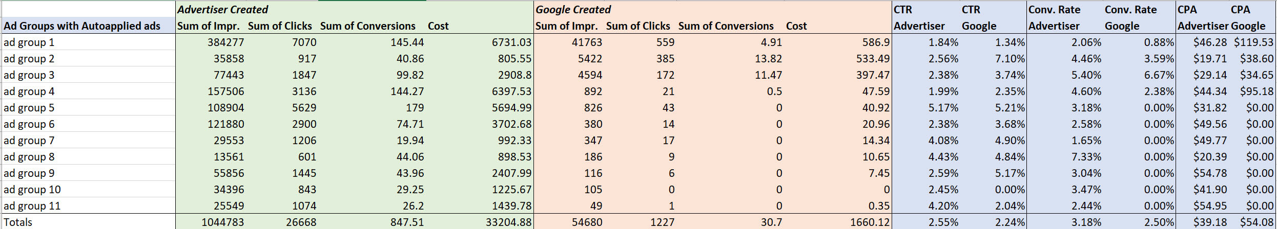 Now, Google did beat the advertiser on occasion in terms of CTR, and this data is being pulled from text that is already on your site. So, for most advertisers, they should just follow this approach: