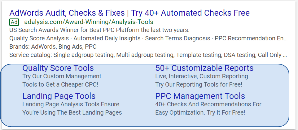 Being creative with sitelinks can help bring a lot of additional visibility to your ad and ensure users see your company as a unique and useful brand. Be sure to test them and see what combinations of ads and ad extensions bring you the most qualified traffic that helps you reach your marketing goals.