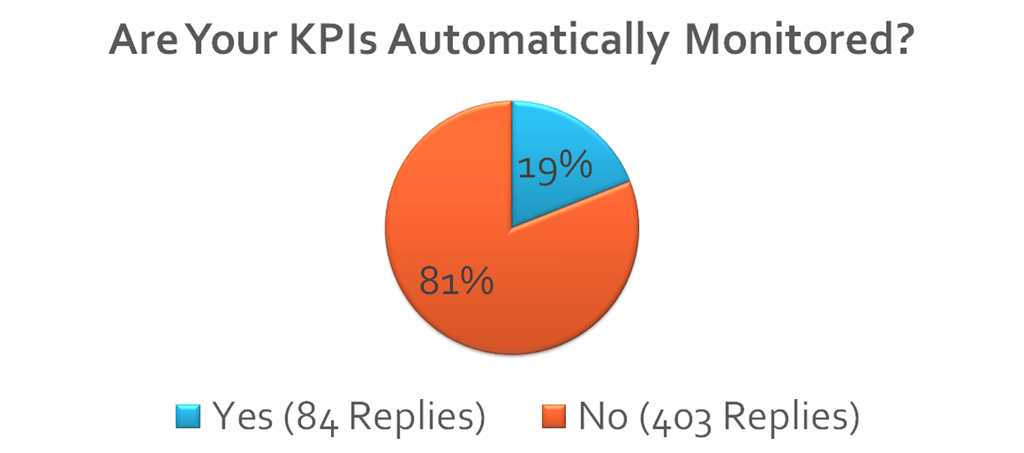 As it’s simple to automate KPI monitoring with scripts or tools, we wanted to know how many companies were automating KPI analysis. The answer was just too low; only 19% of the companies surveyed automate their KPI monitoring.
