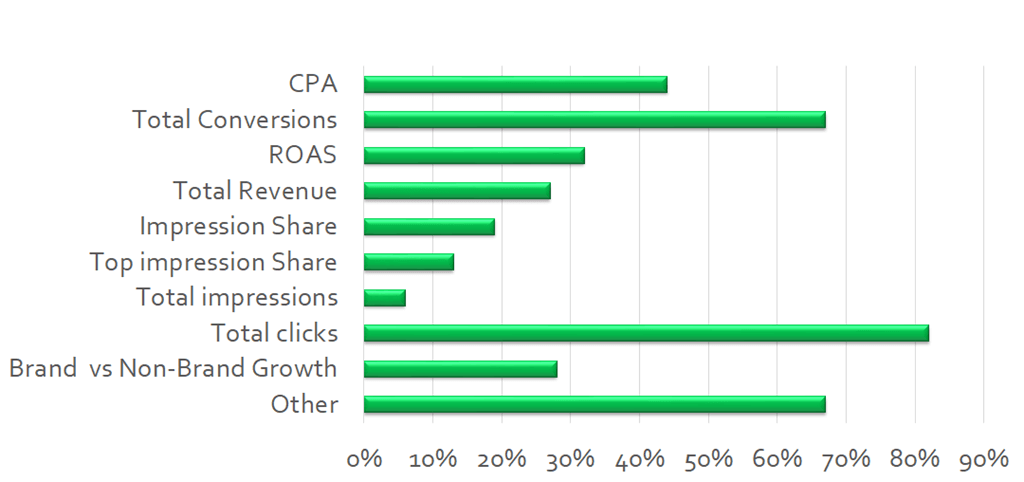 The ‘Other’ was a big category that gathered a lot of various responses. The most common write-in was Quality Score, followed by spend and budgets. Surprisingly, average position was the fourth most common write-in for KPIs being monitored.