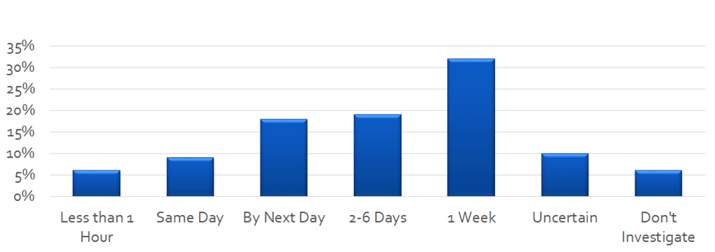 Those who replied with less than 1 hour are impressive. However, 1 hour to same day should be the standard that we all strive for since it’s easy to visualize data.
