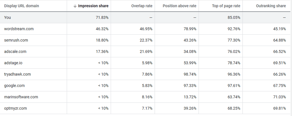 You can see a lot more auction insight information with our Auction Insight Data Studio Report. This information is also useful in differentiating your PPC ads.
